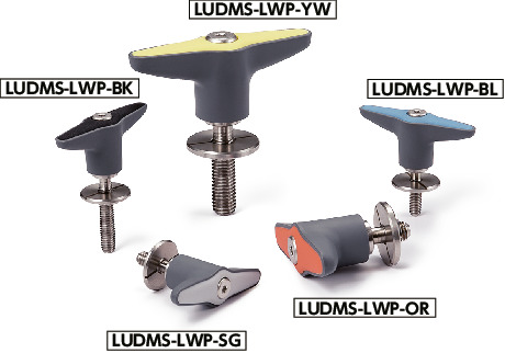 - 装入长孔用垫圈的双臂型塑料制夹紧手柄。