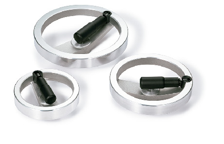 - 带折叠式旋转握柄GNSR的铝合金双辐条手轮。