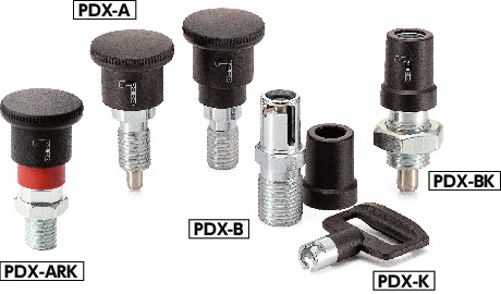 - 带锁定结构的分度柱塞。锁定及解锁的操作方法请参考旋钮或盖帽侧面的图示。