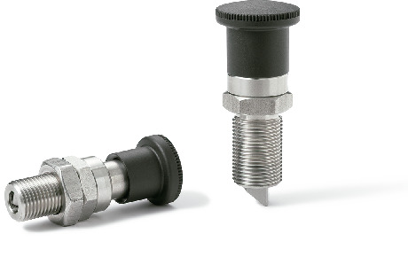 - 带有锁定机构、且销的前端一侧带有倒角的分度柱塞。