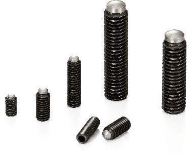 - 螺纹前端的球面形垫通过点接触牢牢地固定工件。