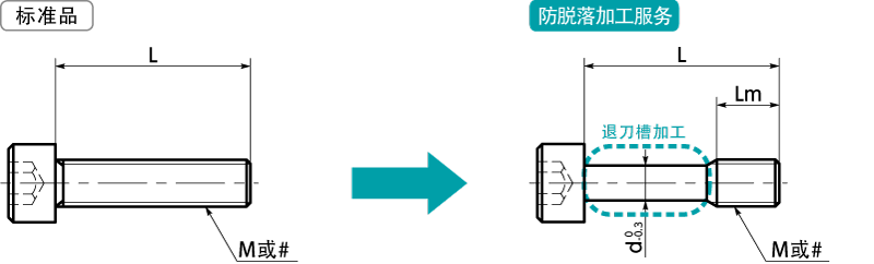 - 在螺丝上进行退刀槽加工,使其具有防脱落功能。