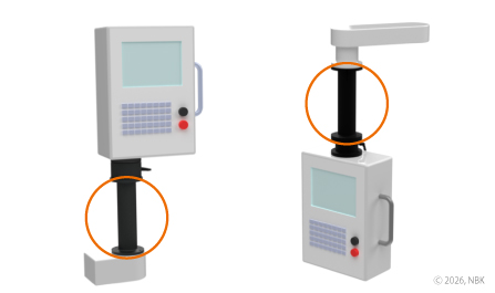 旋转单元是可旋转和固定机床等的操作面板或控制面板的单元。 可将操作面板等自由调整到便于观察的角度,从而提高工作效率。 此外,采用黑色涂装,外观与设备融为一体。 有支柱型和悬挂型两种安装方式可供选择。