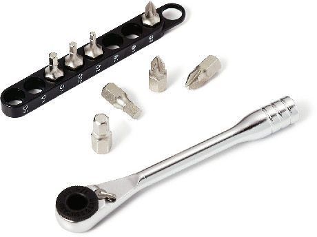 - 是全长较短的螺丝批头与专用螺丝批头棘轮手轮的套件。在棘轮部安装了螺丝批头的状态下,高度为约17mm,适用于窄处作业。